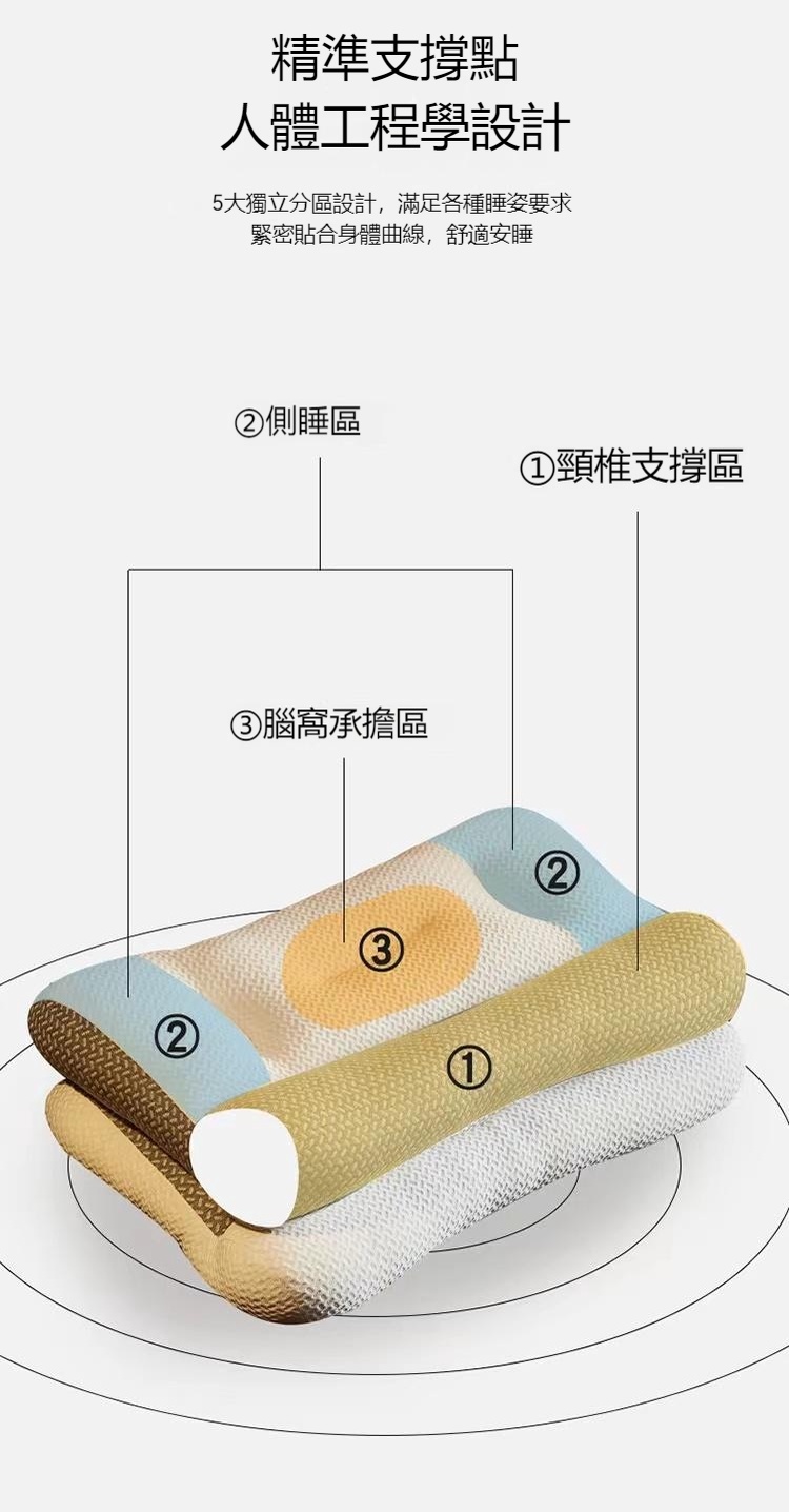 枕頭左右兩邊的側睡區,能在身體側睡時填補頭頸之間空隙,保持脊柱呈一條直線。