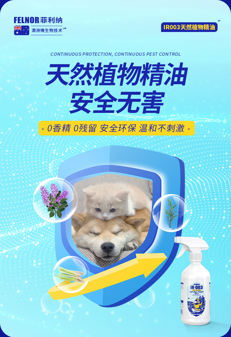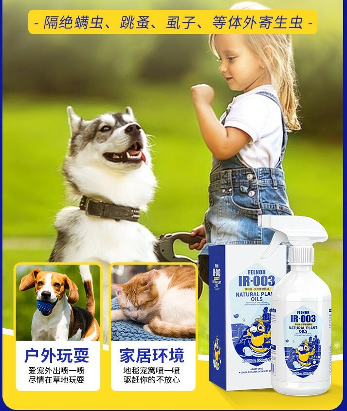 有效消滅跳蚤、蜱、蚤幼蟲、尖蟎及各種昆蟲,包括床蝨. 對人及動物安全.