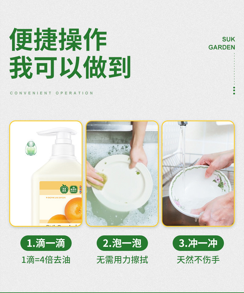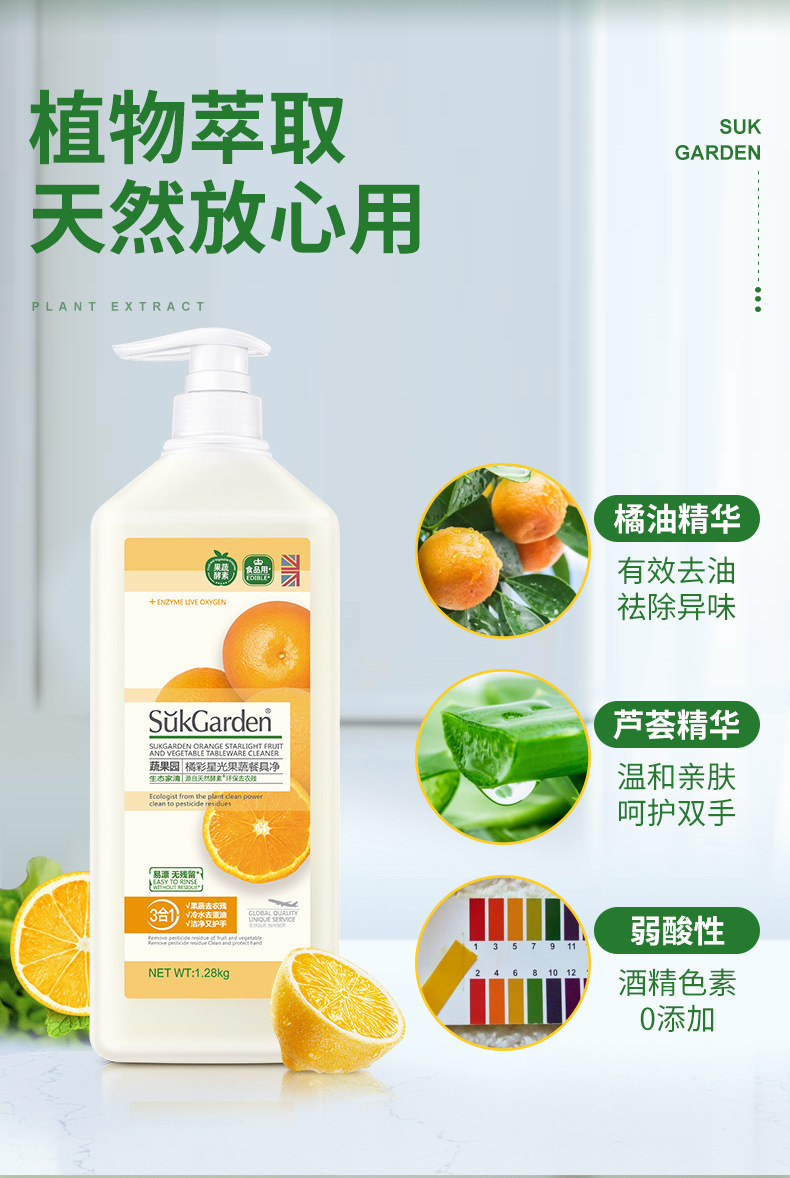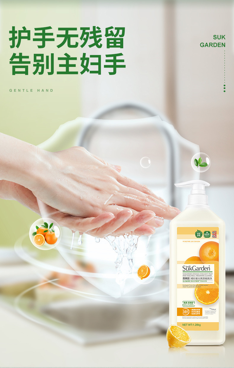 115 【食品安全】Suk garden UK 英國品牌 生果 蔬菜 水果 果蔬 餐具 抑菌去農藥殘留物 家用洗潔精【1.28kg大瓶裝】x1瓶裝 (平行進口) 橙味 純淨天然配方 溫和護手 Orange Starlight Fruit and vegetable tableware cleaner